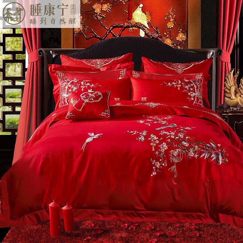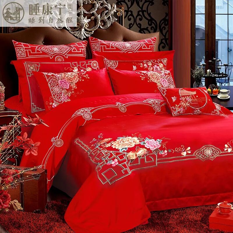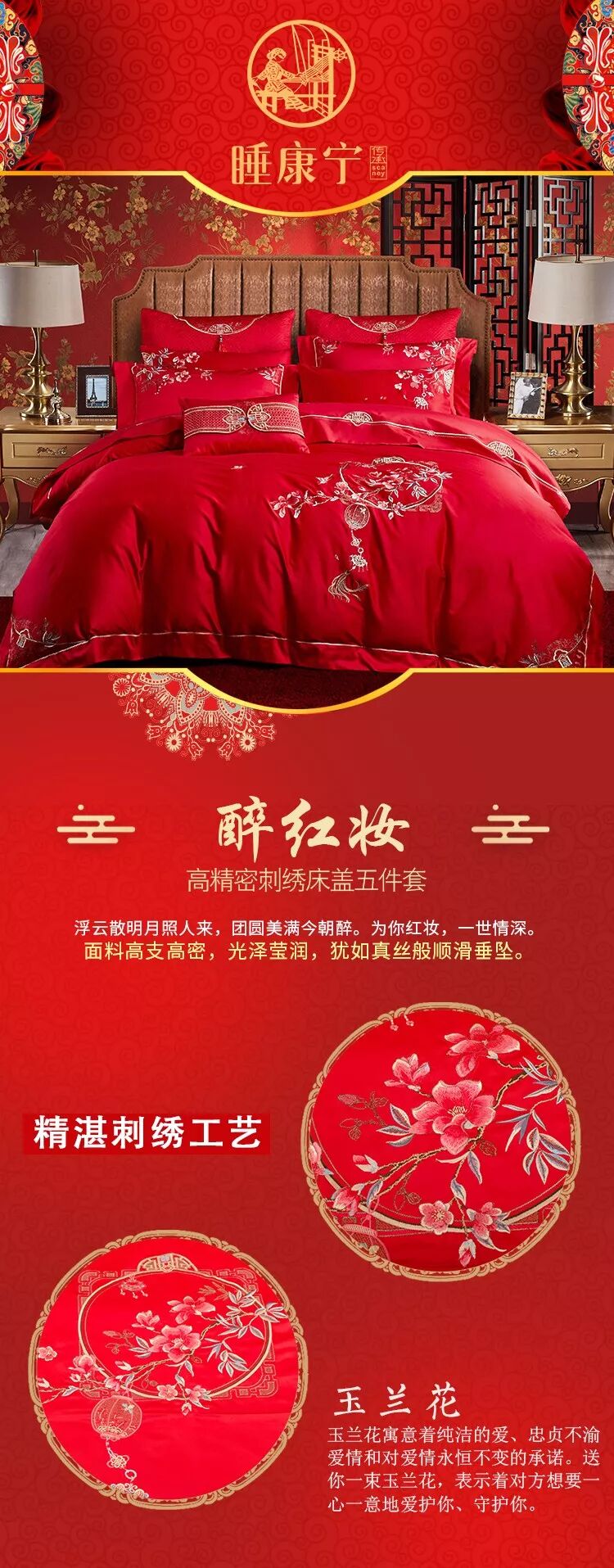 1套床品是结婚当天使用,最好是采用大红色进行装点,红色看上去会非常喜庆,而且可以纳福辟邪,花型则多是选择牡丹花、凤尾花、玉兰花等花型纹样,符合当地人柔美雅致的品味。