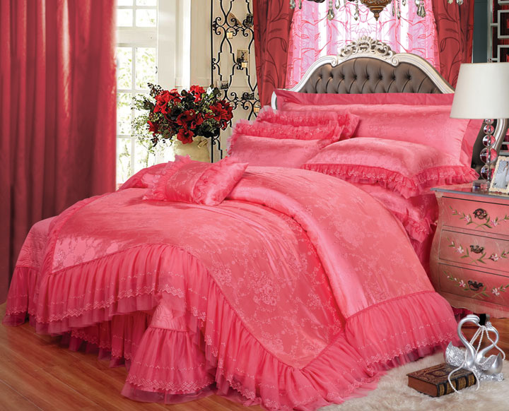 浪漫唯美的爱情:时尚的小碎花天丝混织提花融入了庄严寓意的粉色,处处透出了细腻和娇贵。蕾丝花边和网纱的漫美装饰点缀,层层视觉中流露了小女人的情怀和公主般的浪漫爱情故事。